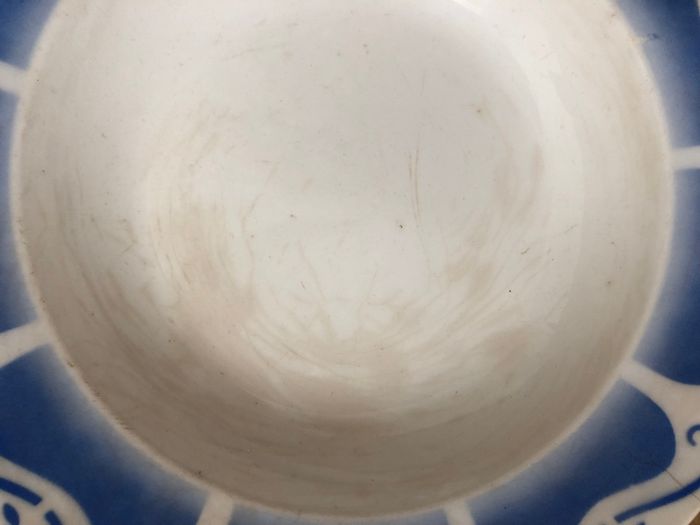 Vintage joli plat creux en faïence arabesques bleu roi - photo numéro 8