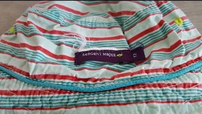Chapeau réversible Sergent Major "P'tit Dino va à la plage" Excellent état car très peu porté - 1ère main Taille 2 : correspond à du 6-9 mois (45 cm) #bobsergentmajorgarcon #ciya76accessoiresenfant