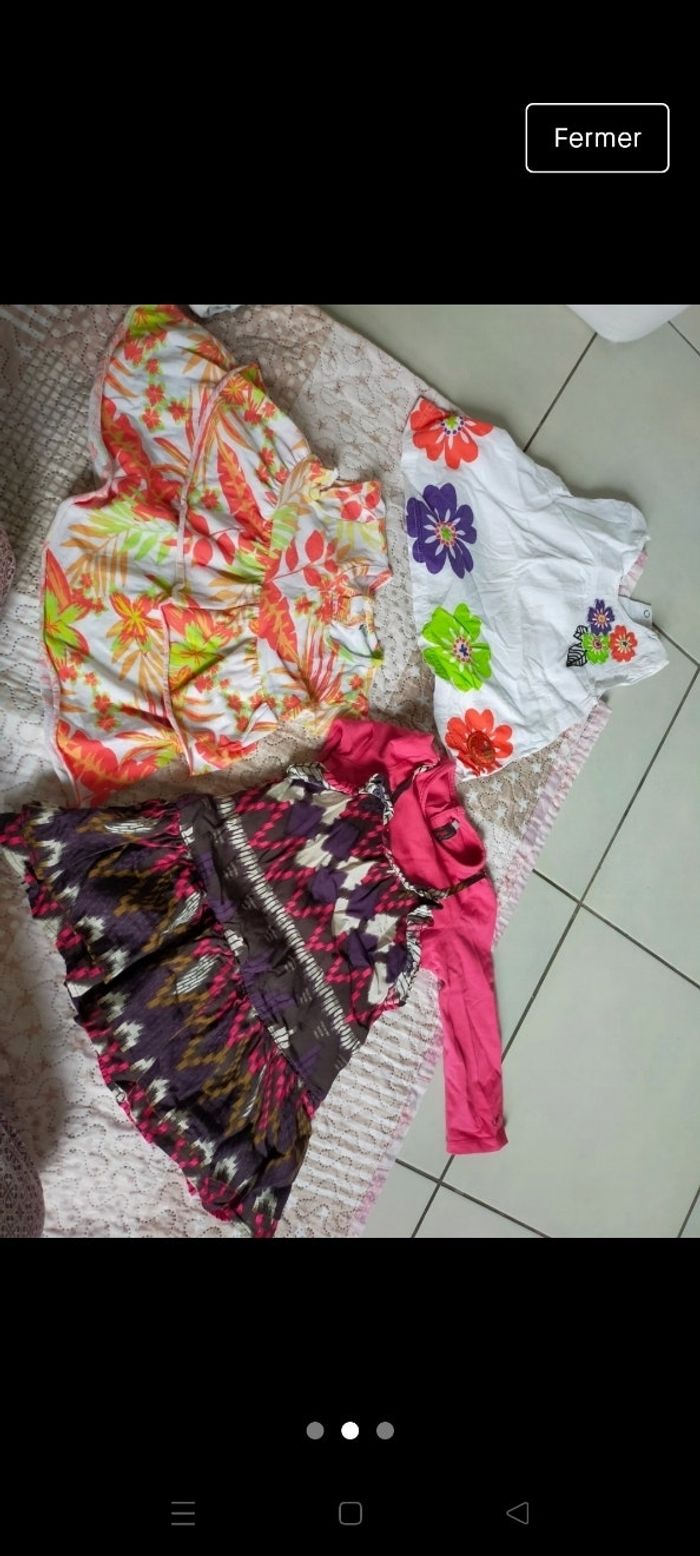 Lot une belle robe catimini, une robe sans marque très lumineuse et un haut blanc un peu taché offert.