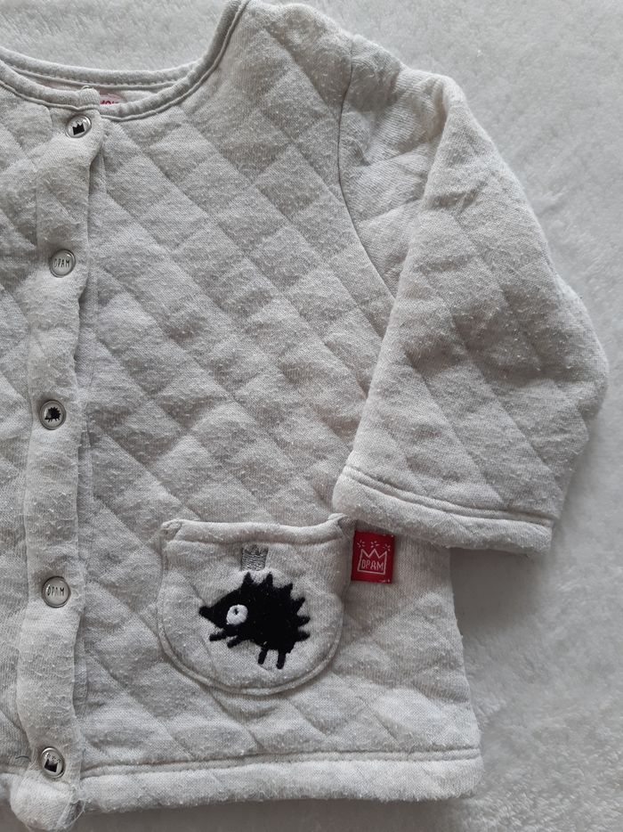 Veste molletonnée 6 mois DPAM Du Pareil Au Même Grise claire Motif hérisson Boutons pressions ⚠️ présence de bouloches ⚠️ D'autres photos possible sur demande Merci de privilégier les envois par Mondial Relay