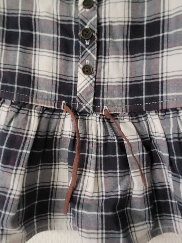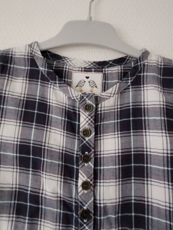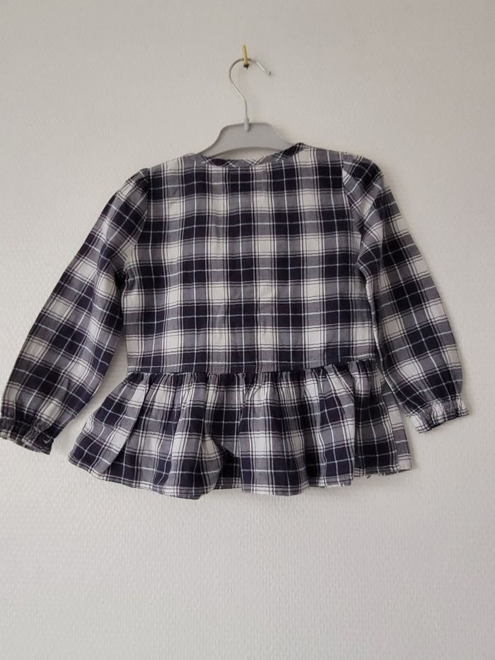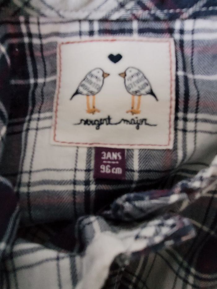 Tunique écossaise de marque Sergent Major taille 3 ans Fond blanc avec carreaux bleu marine et fin liseré rouge Col rond Manches longues Petit volant dans le bas 100% coton En très bon état