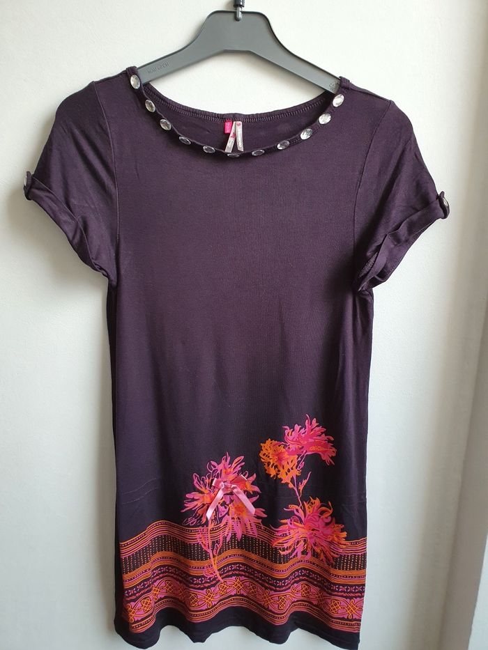 Pastilles brillantes le long du col Nœud ruban sur fleur Étiquette matière coupée car gênante Couleur noire dominante