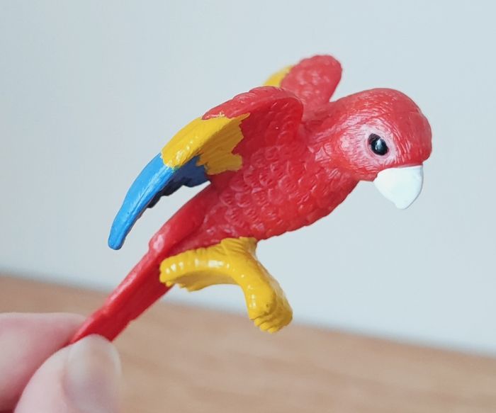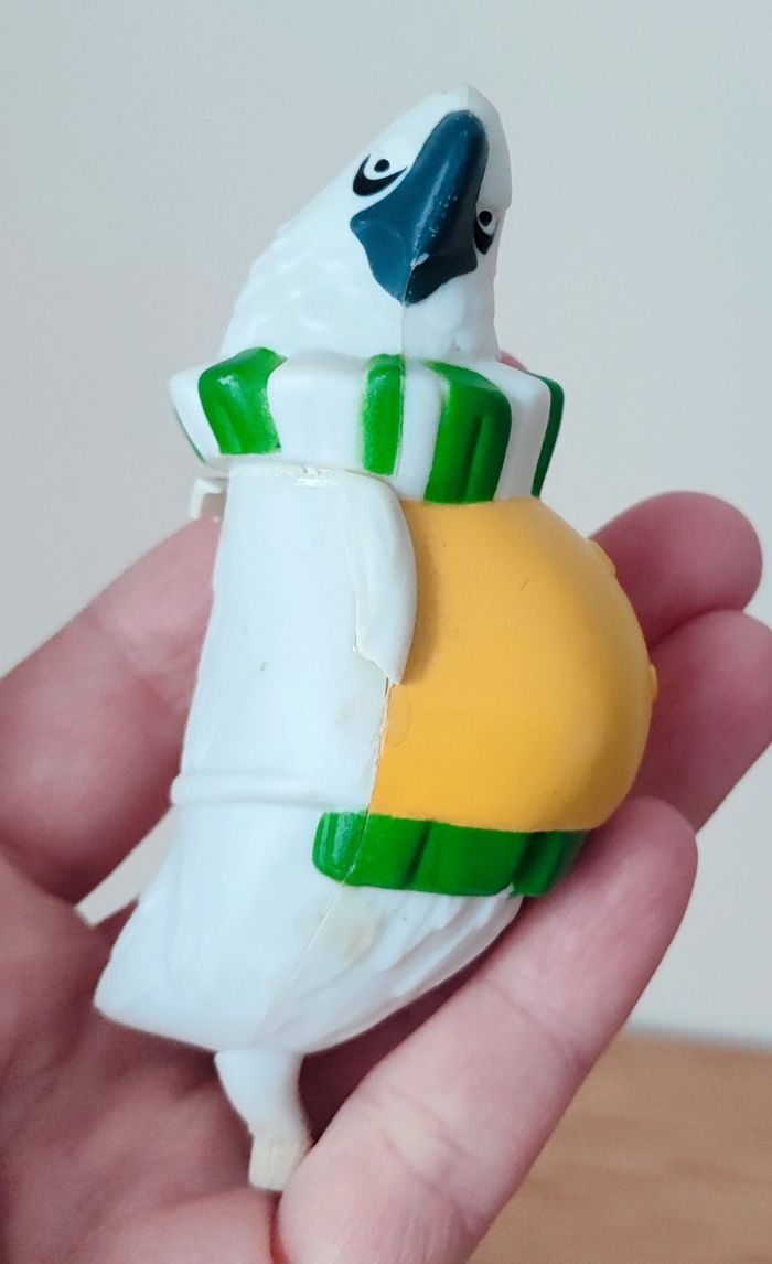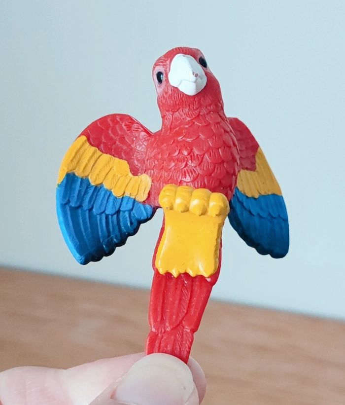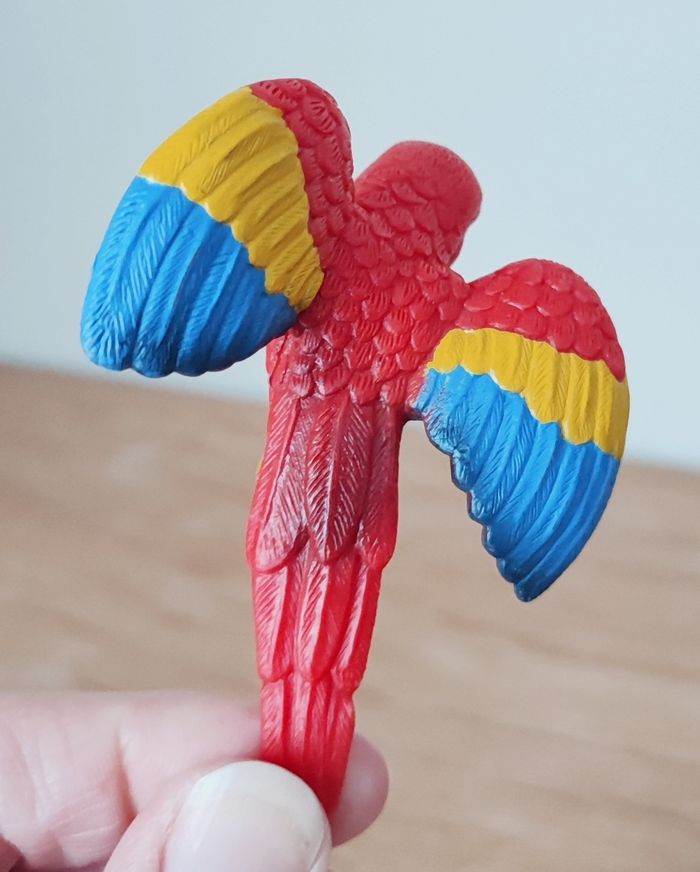 Lot de 2 figurines oiseaux - Perroquet en caoutchouc 8 cm - Oiseau blanc en plastique 9,5 cm ❌ Bon état car le blanc est cassé par endroit mais le perroquet est impeccable #oiseaux #perroquet #figurineoiseau #figurineperroquet
