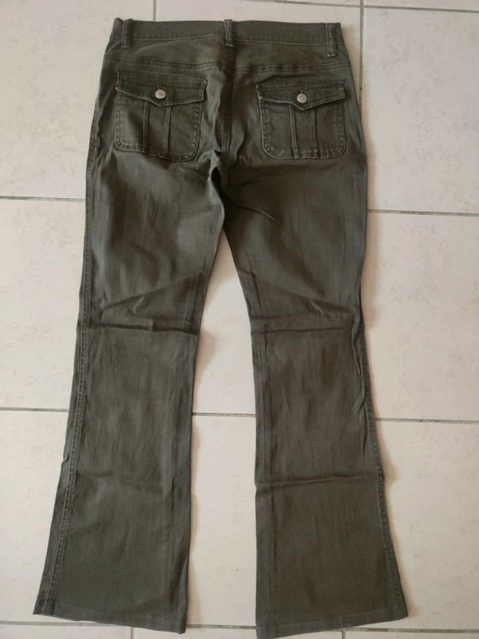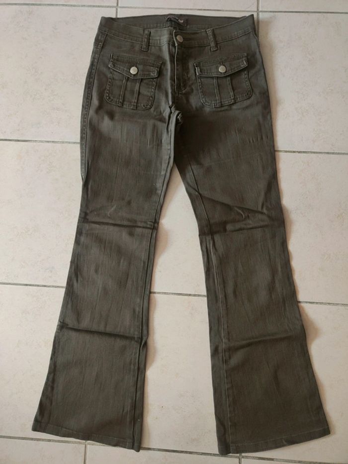 Pantalon marron kaki Jennyfer Taille 38 Bas évasé 24 cm Bon état Dimensions : longueur 98 cm et largeur taille 37 cm