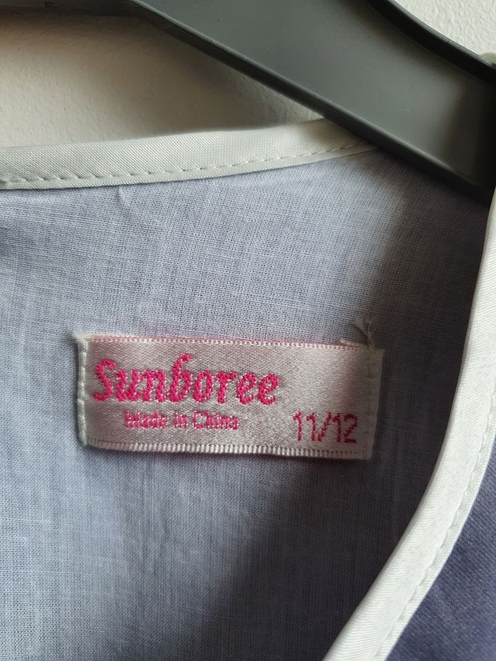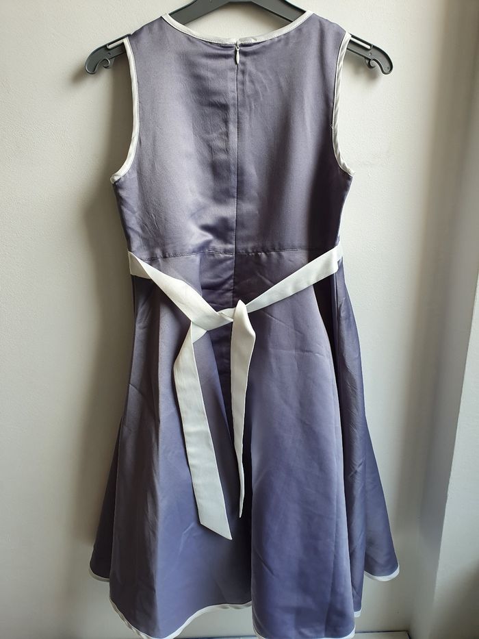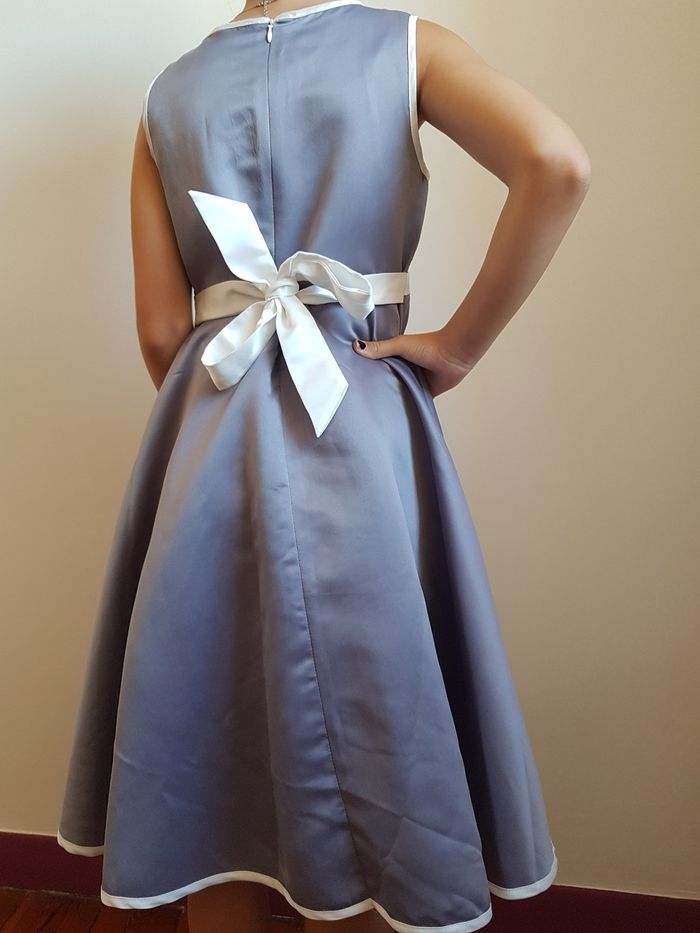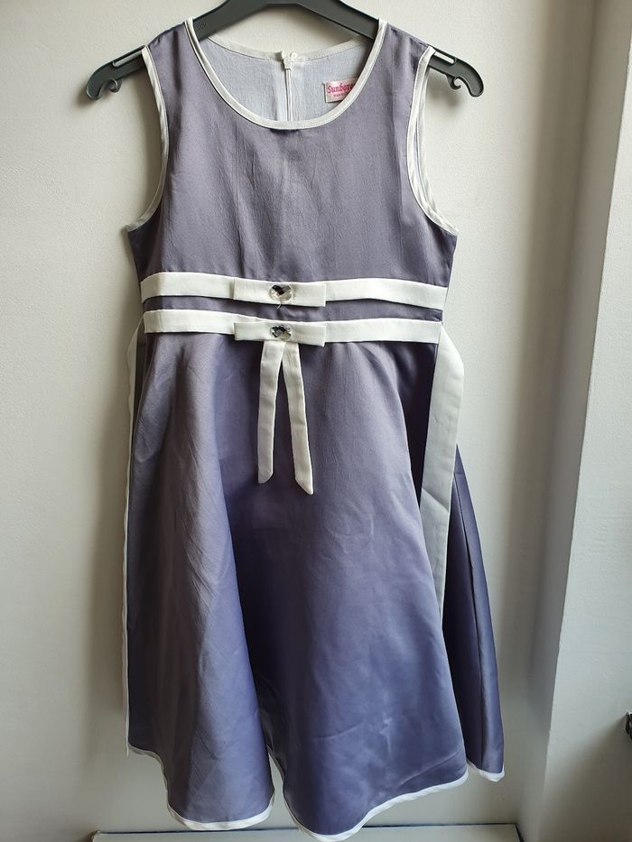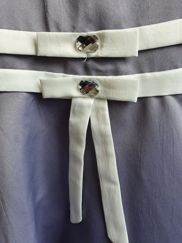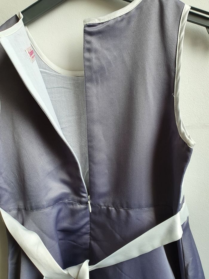 Robe gris avec ceinture blanche intégrée. Deux décorations type diamant sur le devant. Ne se froisse pas 100% polyester Doublure intérieure blanche Marque: Sunboree