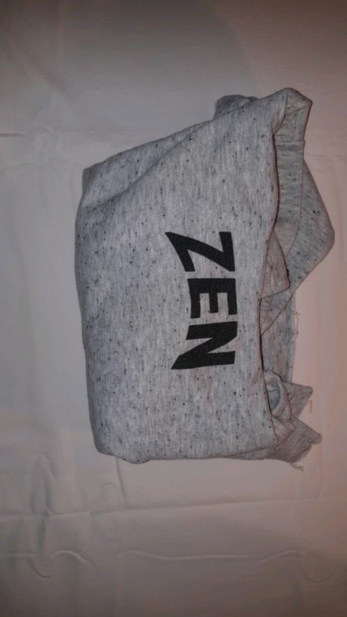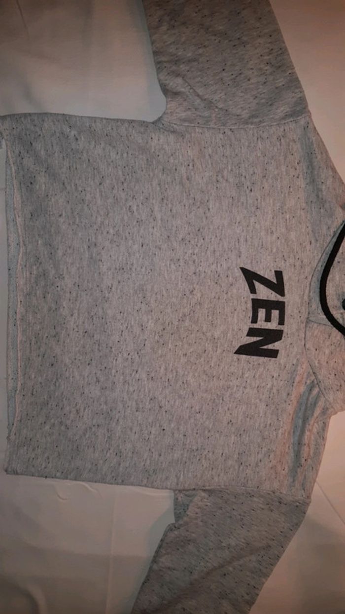 Je vends un sweat t-shirt court gris à capuche en XS avec écritures noires, marque Trois25. Très bon état