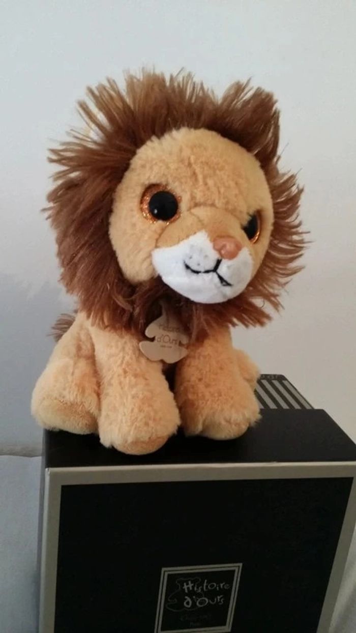 Peluche lion taille environ 15/20cm De la marque histoire d'ours En très bon état De la collection savane peps Vendu sans la boîte noir