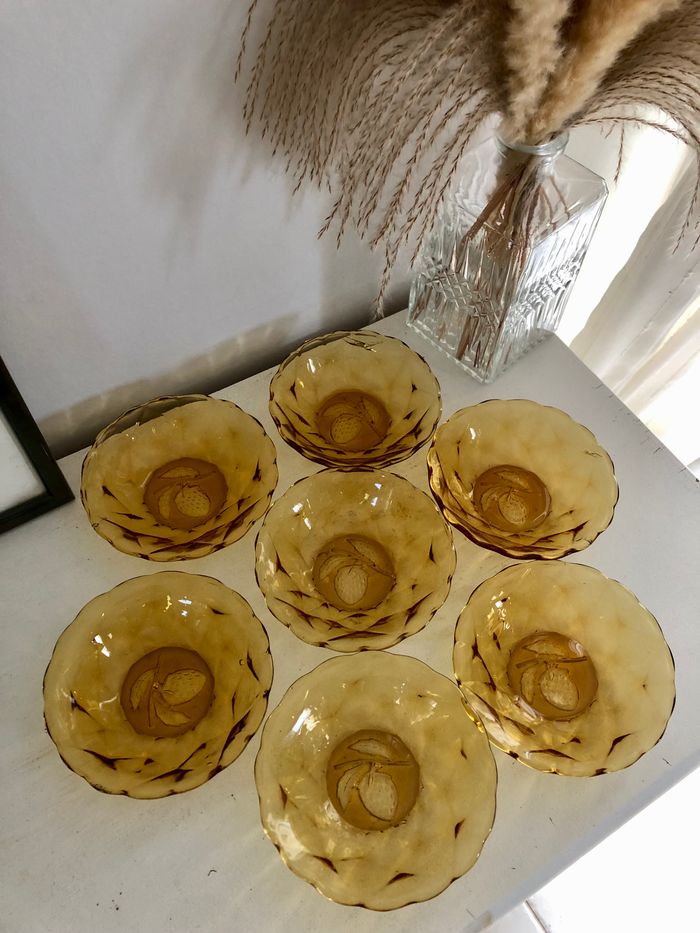 Vintage lot de 7 coupelles à fruit en verre marron ambré - photo numéro 1