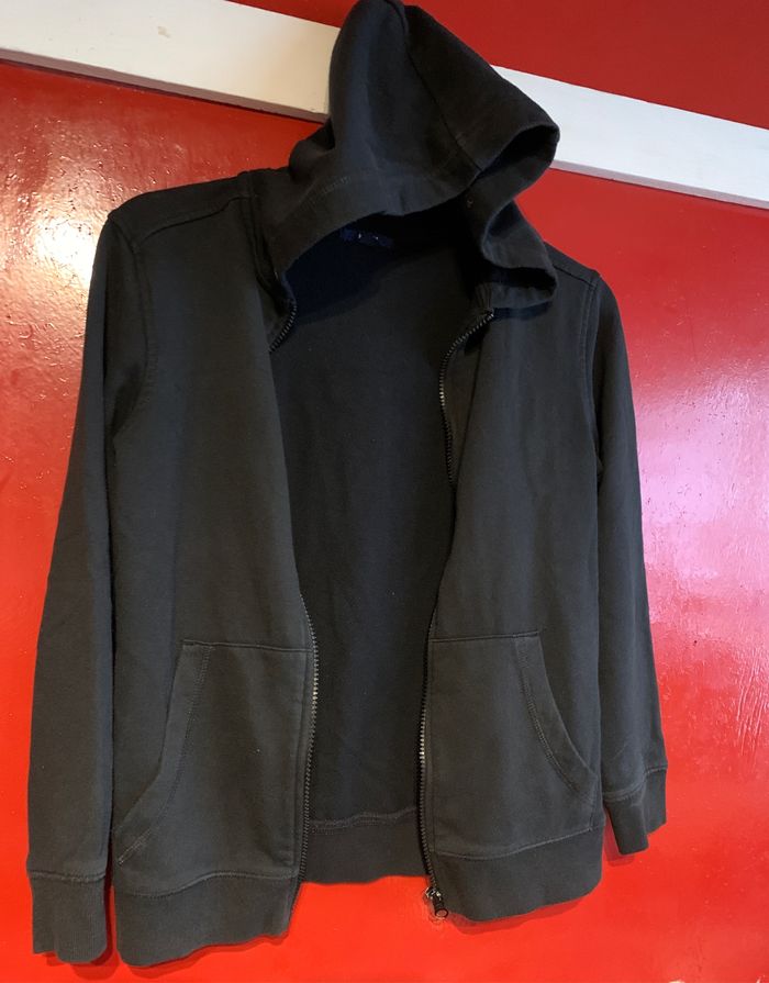 Sweat Shirt veste gilet noire à capuche Kiabi 12 ans - photo numéro 1