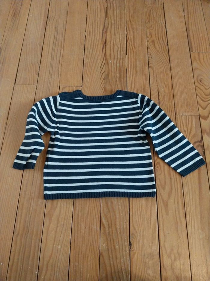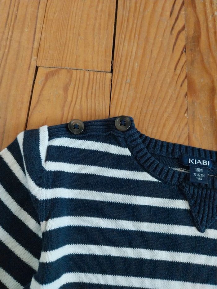 Pull marinière de la marque Kiabi. Boutons sur epaule. Etiquette intérieure coupée. Très bon état. #mariesouc_garçon18mois #mariesouc_kiabi