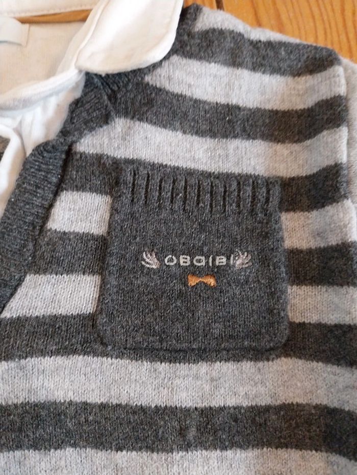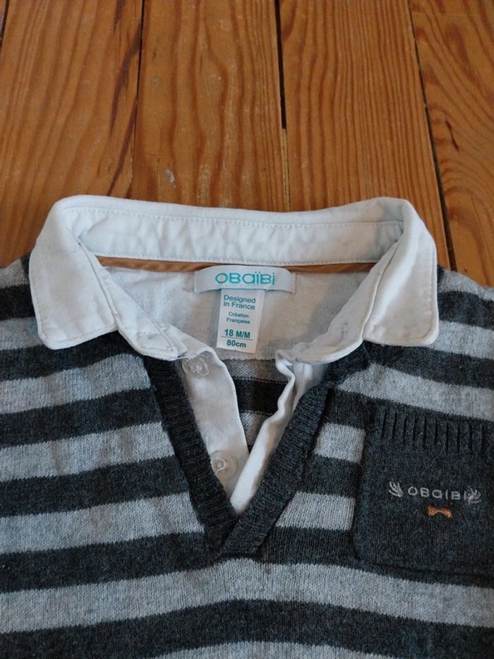 Pull avec col chemise de la marque Obaibi. Bon etat car présence de bouloches dû à la présence de laine. #mariesouc_garçon18mois #mariesouc_obaibi