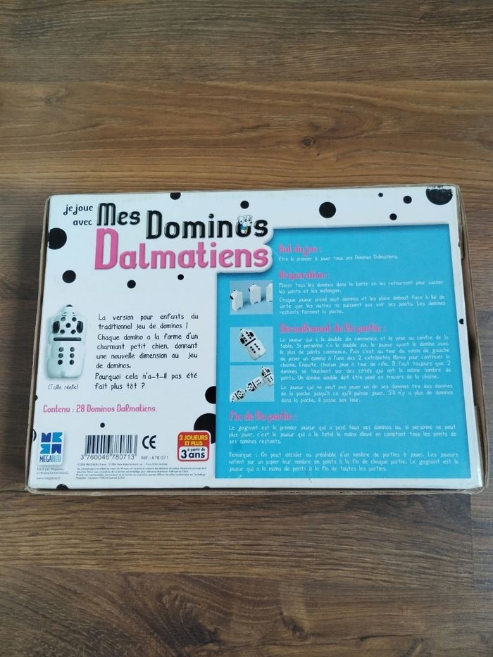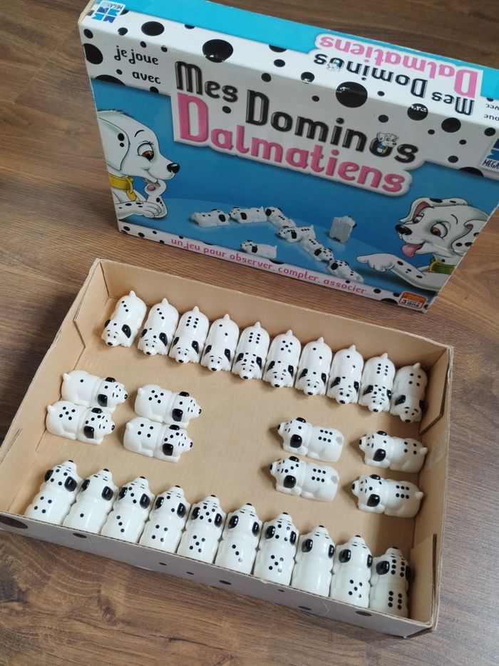 Originalité pour ce jeu de dominos 28 chiens, les Dalmatiens Marque Megableu Jeu complet et en parfait état.