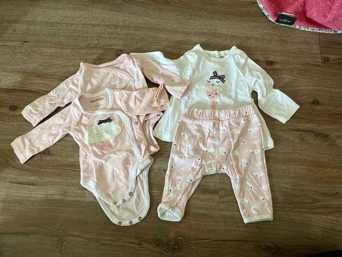 2 bodys manche longue + 1 t-shirt manche longue + un pantalon