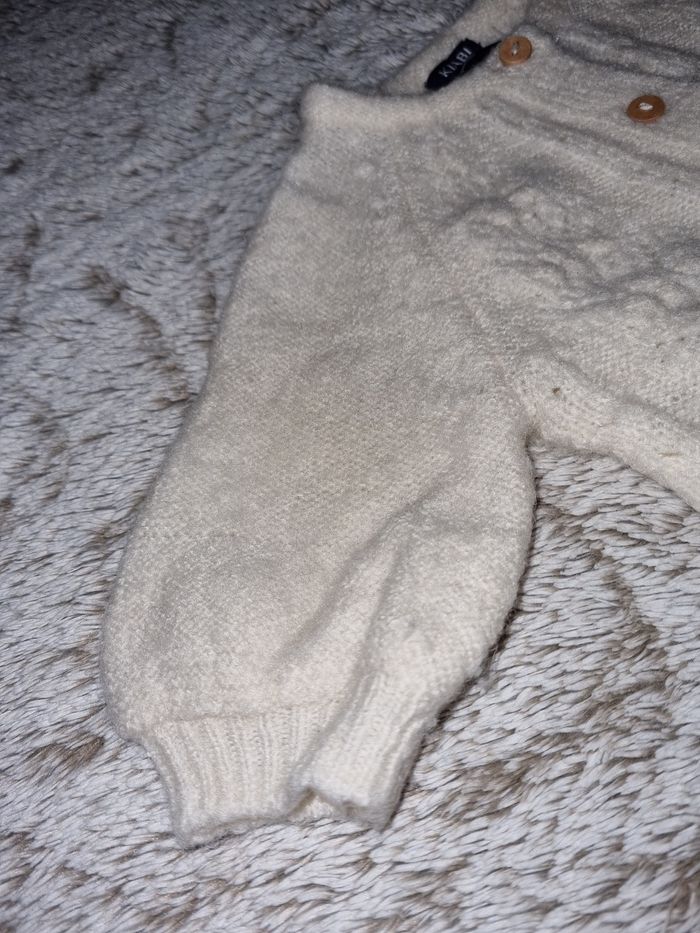 Gilet laine epais couleur crème. Manche bouffantes. Très beau modèle. Taille 1 mois