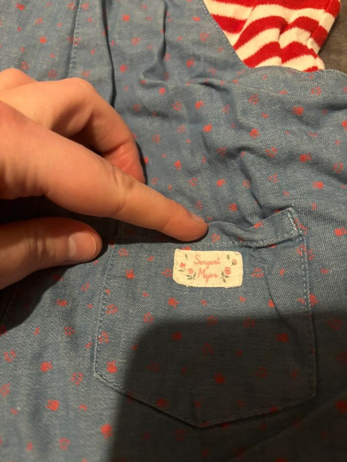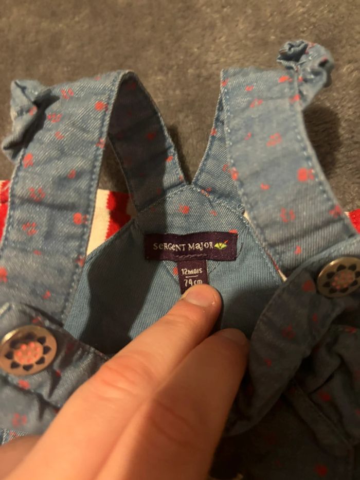 Ensemble bébé fille Salopette + Bodie Ouverture entre les jambes, très pratique 😍 Marque : Sergent Major Taille : 12 mois Couleurs : bleu et rouge 💙🤍❤️ État : très bon ☺️ Envoi rapide 📬 Tous les habits sont nettoyés avant l’envoi 😊 N’hésitez pas a faire un tour dans mon dressing pour profiter des réductions pour l’achat d’un lot 🌺
