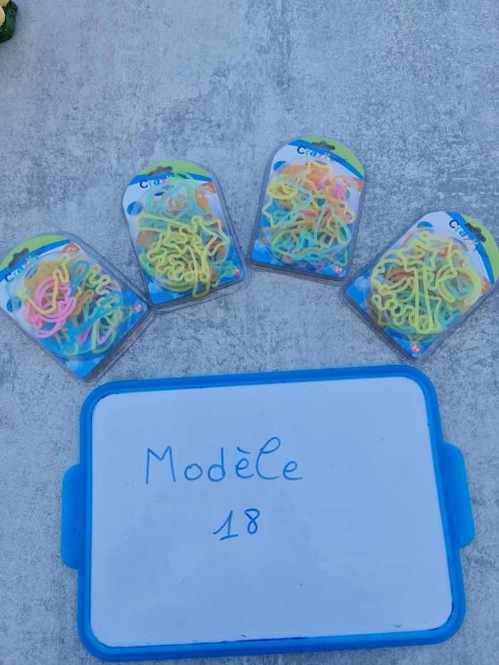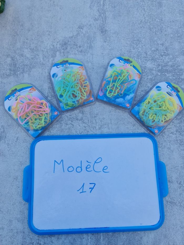 Vends plusieurs lot de bracelets en silicone bandz Un lot = 4 boîtes = 4 € le lot Modèle 17 : princesses Modèle 18 : princesses Modèle 19 : princesses Merci de me contacter pour me préciser quel lot vous souhaitez