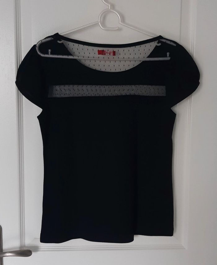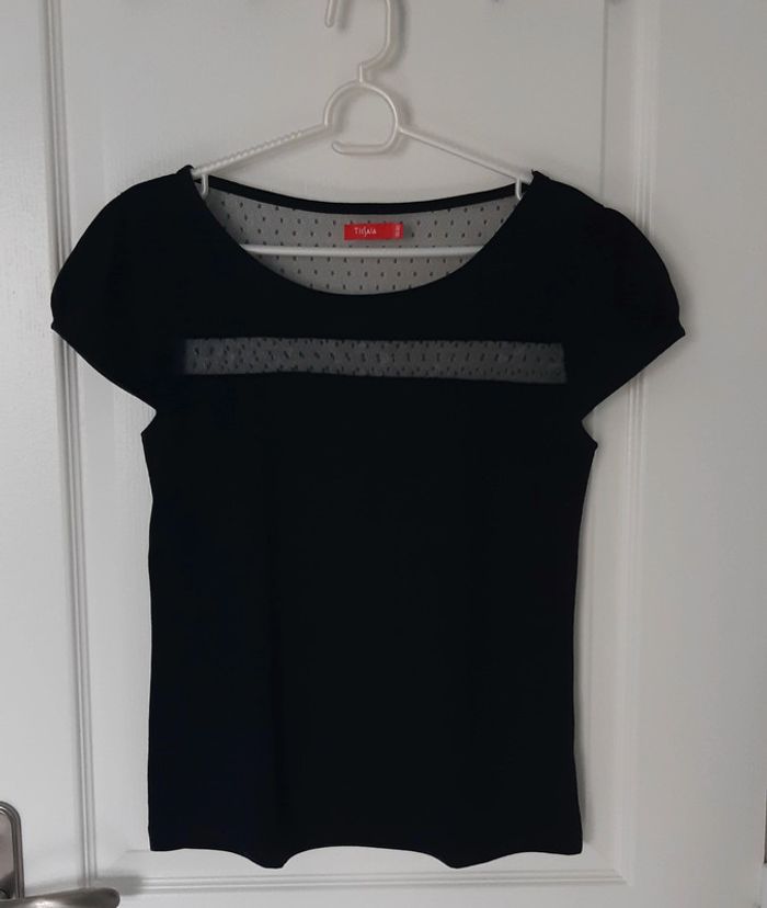 T-shirt femme Manches courtes Taille 38-40 Matière dentelle brodée devant et au dos voir 📷 Coloris noir Marque : Tissaia
