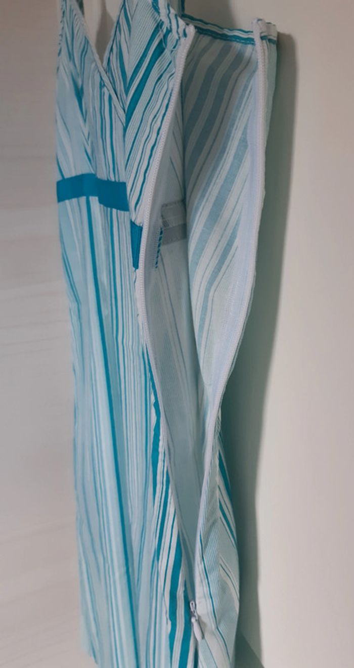 Robe d été à bretelles réglables Femme taille 40 Marque Etam Coloris rayée bleu et blanc Matière 93% coton 7% elasthanne Ouverture zippée sur côté droit
