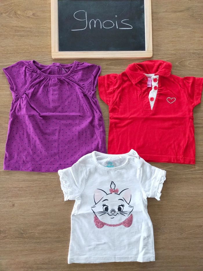 Lot de 3 Tshirts fille manches courtes taille 9mois Excellent état Différentes marques