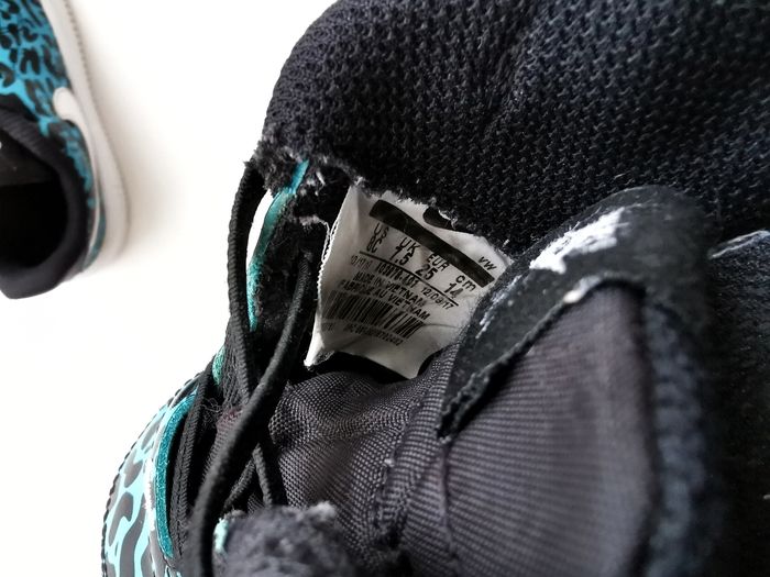 Nike Air force 1 bleu à motif, taille 25, les motifs s'effacent légèrement sur les parties avant des chaussures.