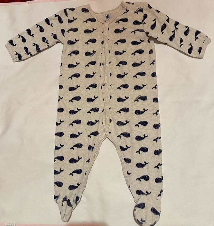 Pyjama baleines en velours - petit bateau - 12M - photo numéro 1