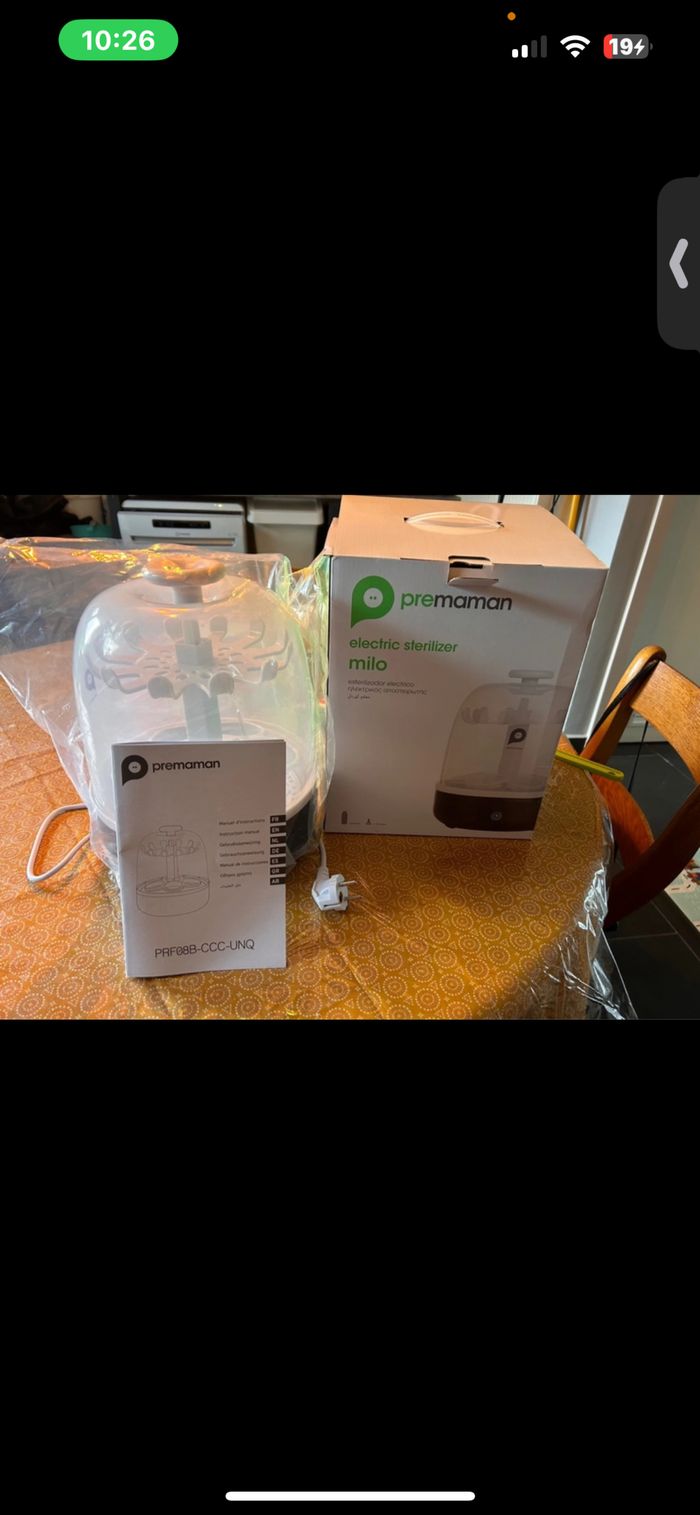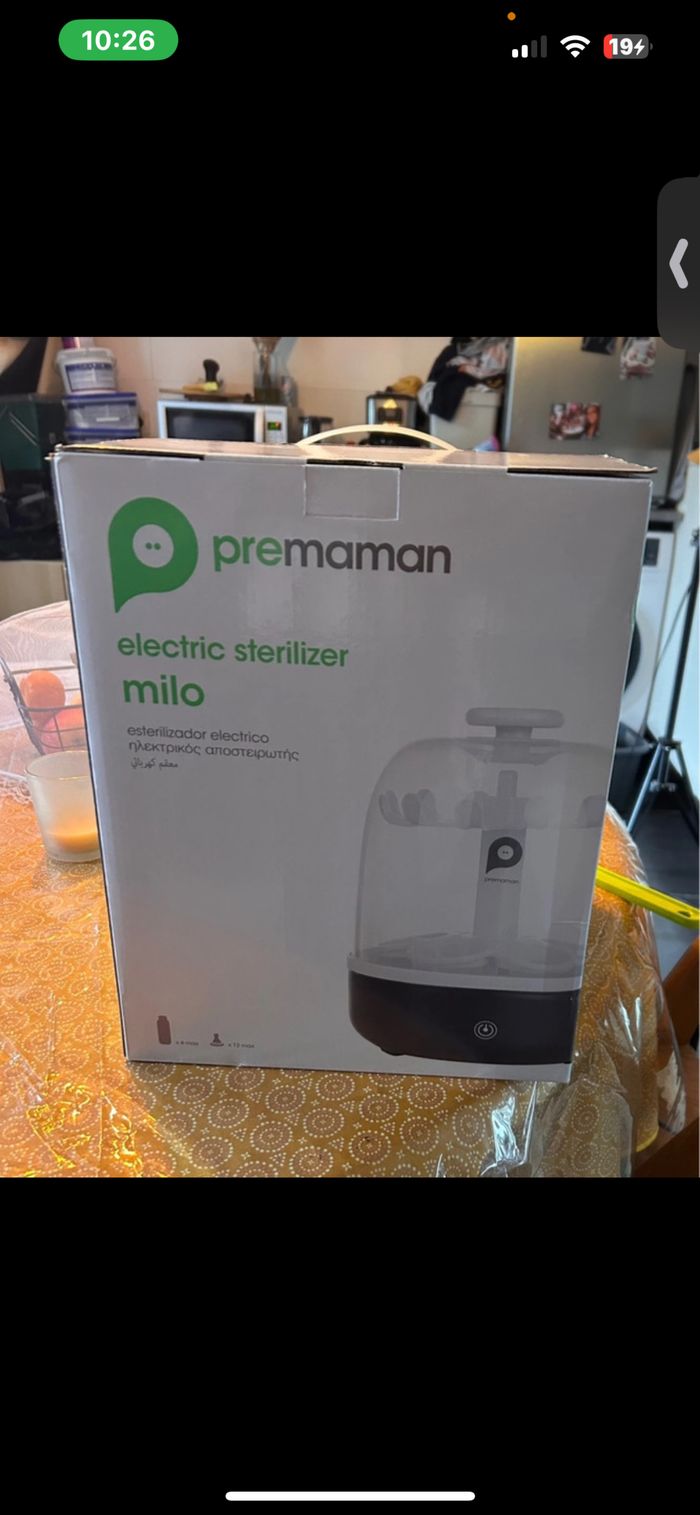Stérilisateur Milo utiliser 2 mois. Comme neuf. Avec la boîte le sachet de protection et la notice