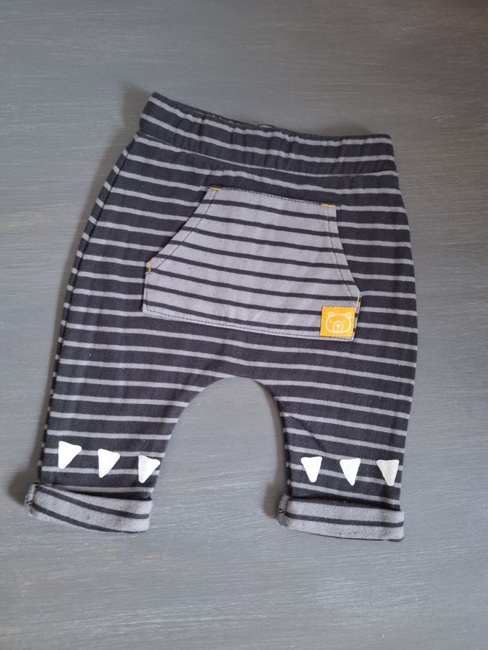 GARÇON 1 MOIS N°761 sarouel rayé 2 tons gris ,imprimé Taille élastique Taille 1 mois Orchestra 3,50€ #kelly_garçon1mois
