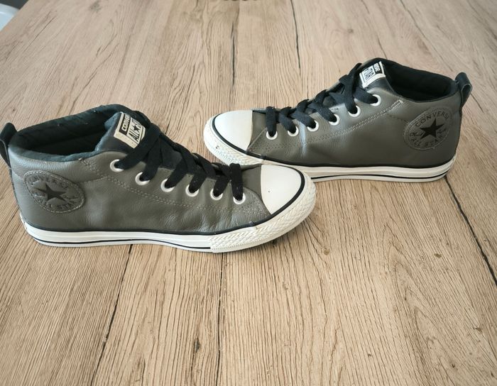 Vend superbe converse all star en cuir Couleur gris foncé Très bon état général Juste petite usure voir dernière photo d'où le prix de la paire (ne se voit pas basket porté) Taille 38 Envoi sous 48h ✅