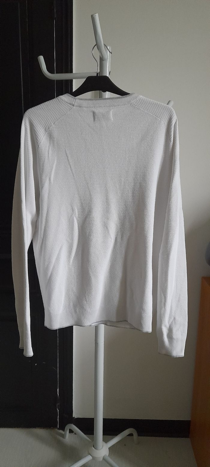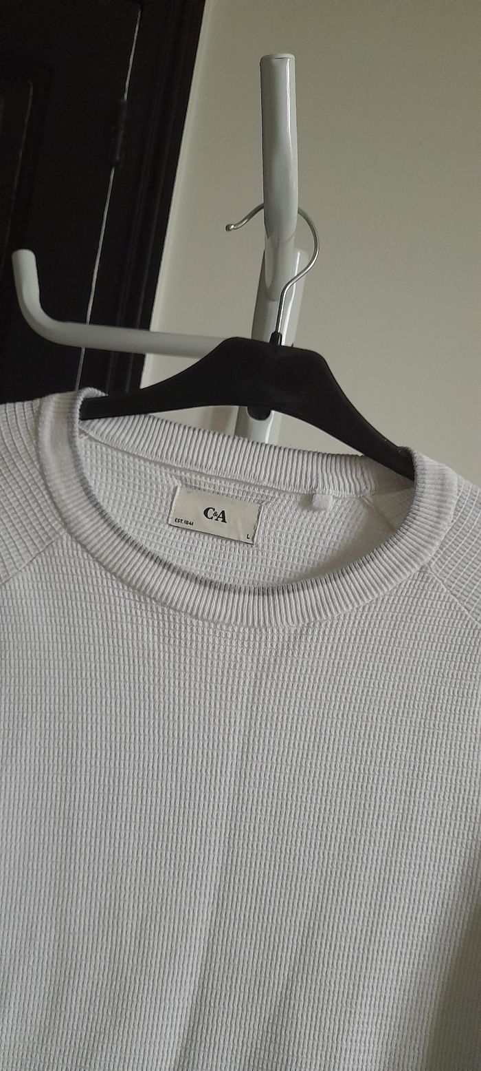 Pull taille L Marque C& A Couleur blanc et liseré gris clair au cou et bas de manches 100 % coton Très très bon état