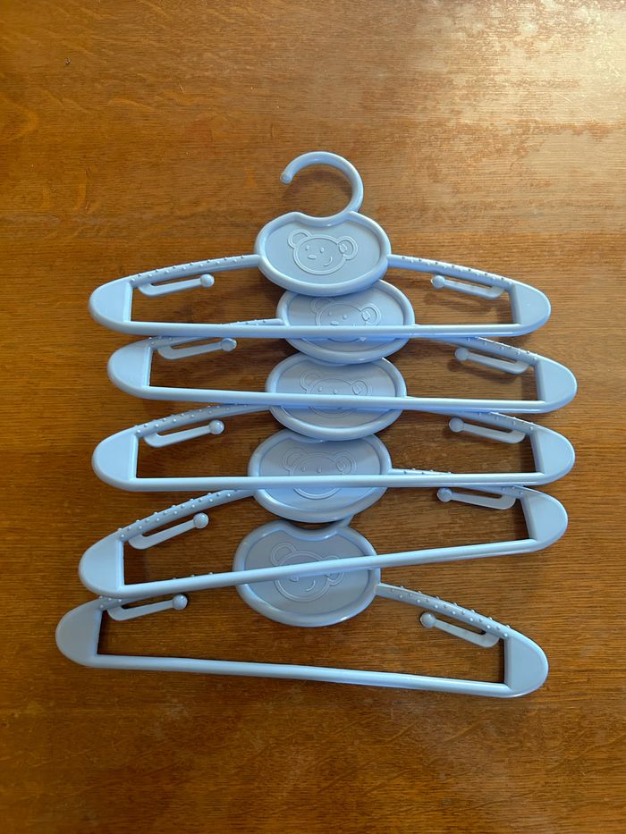 Lots de 5 cintres bébé bleu en très bon état. J’en ai pas l’utilité donc en espérant que quelqu’un d’autre l’aura 😊