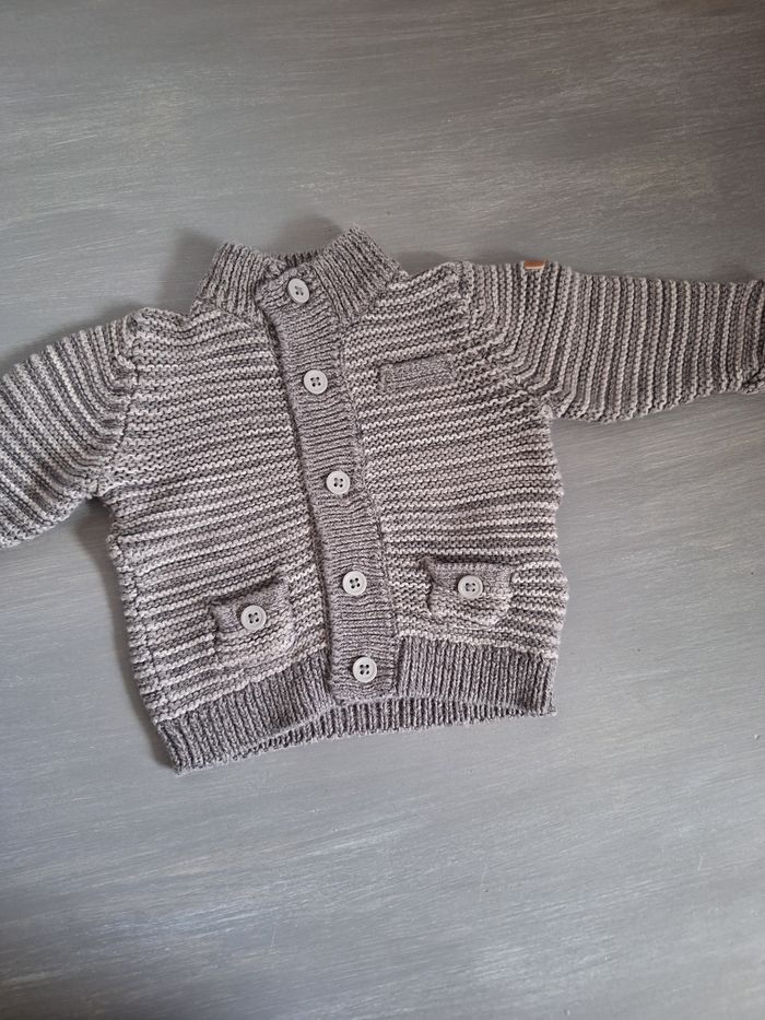 GARÇON 1 MOIS N°957 gilet chic 2 tons de gris 100% coton taille 1 mois Kiabi 3,50€ #kelly_garçon1mois