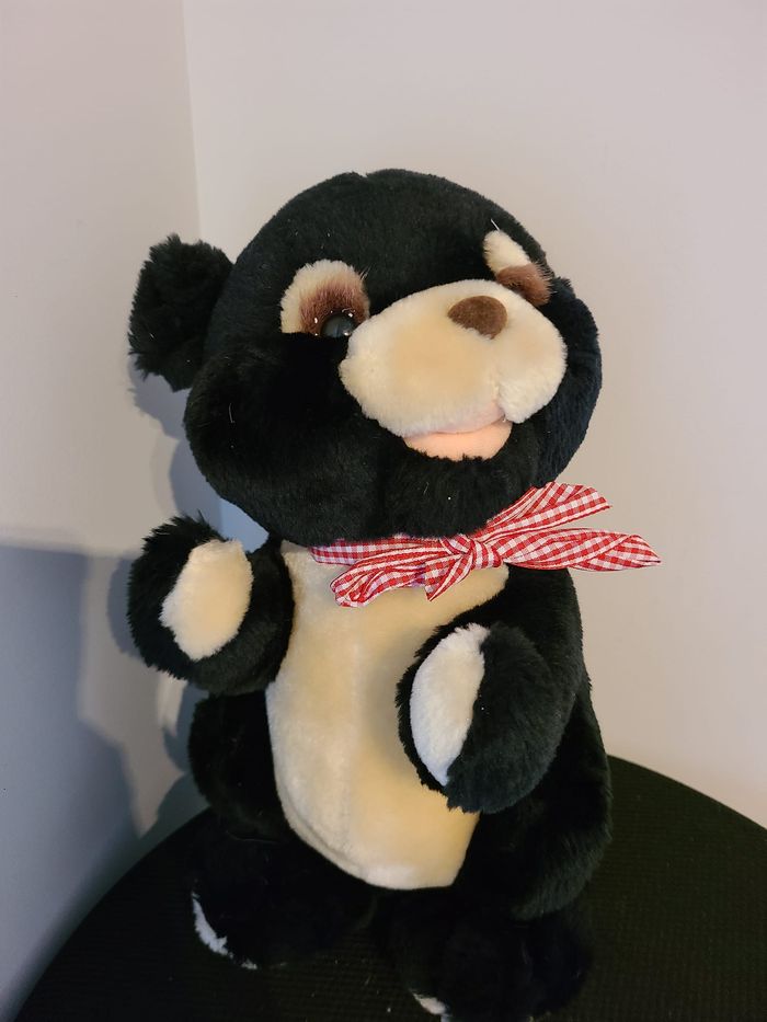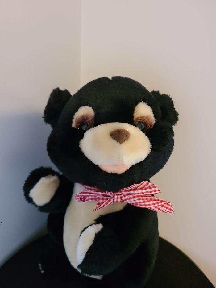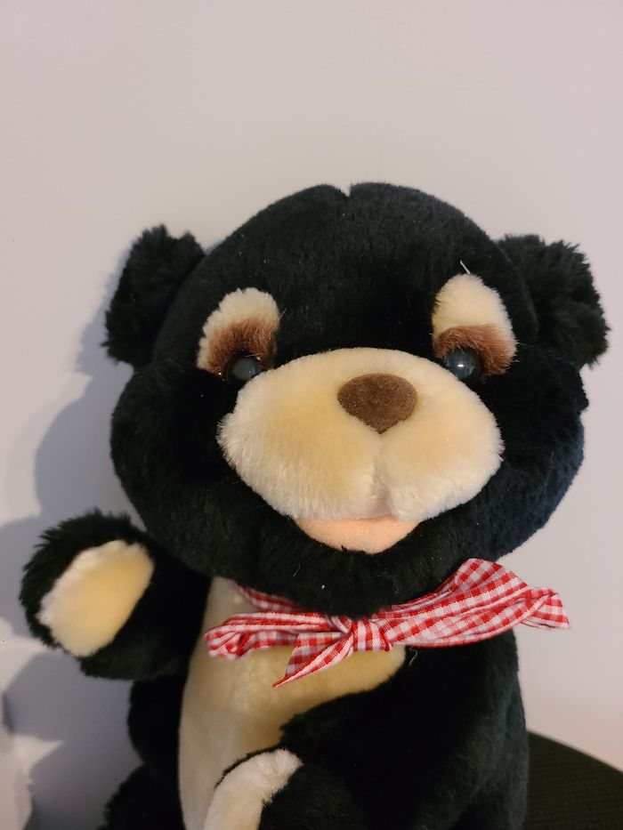 peluche ours des bois noir beige flo vichy rouge blanc 124