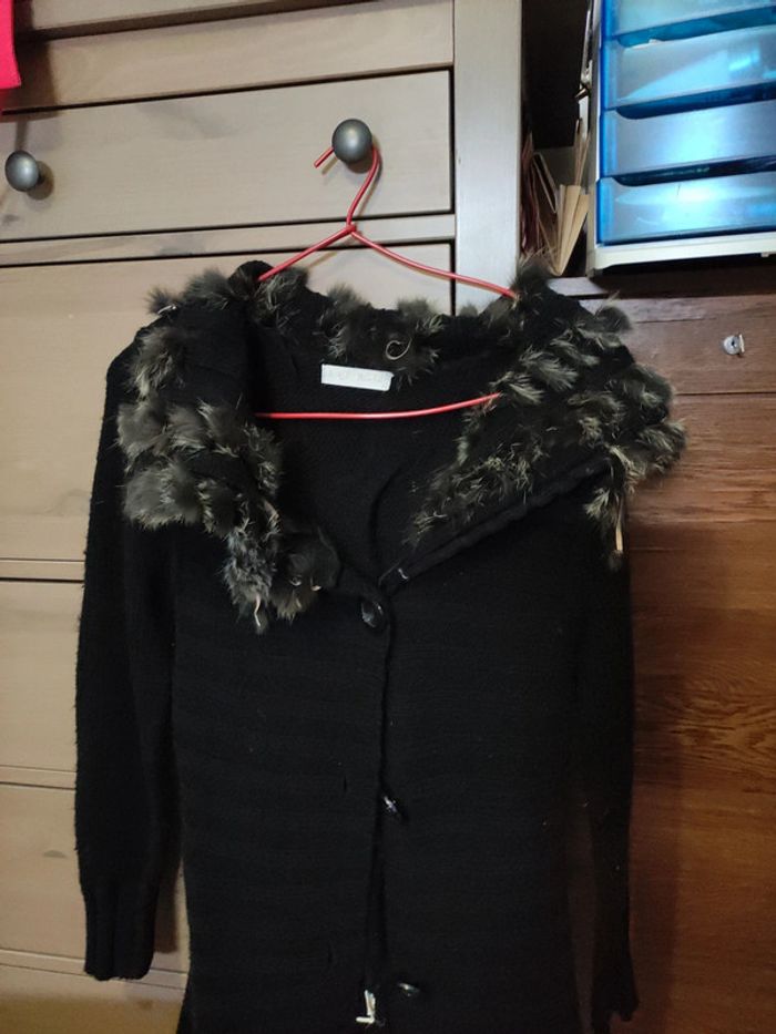 Gilet long noir vintage avec fourrure au col - photo numéro 1
