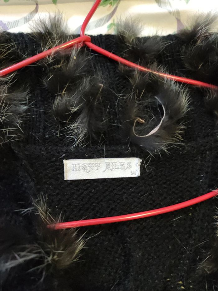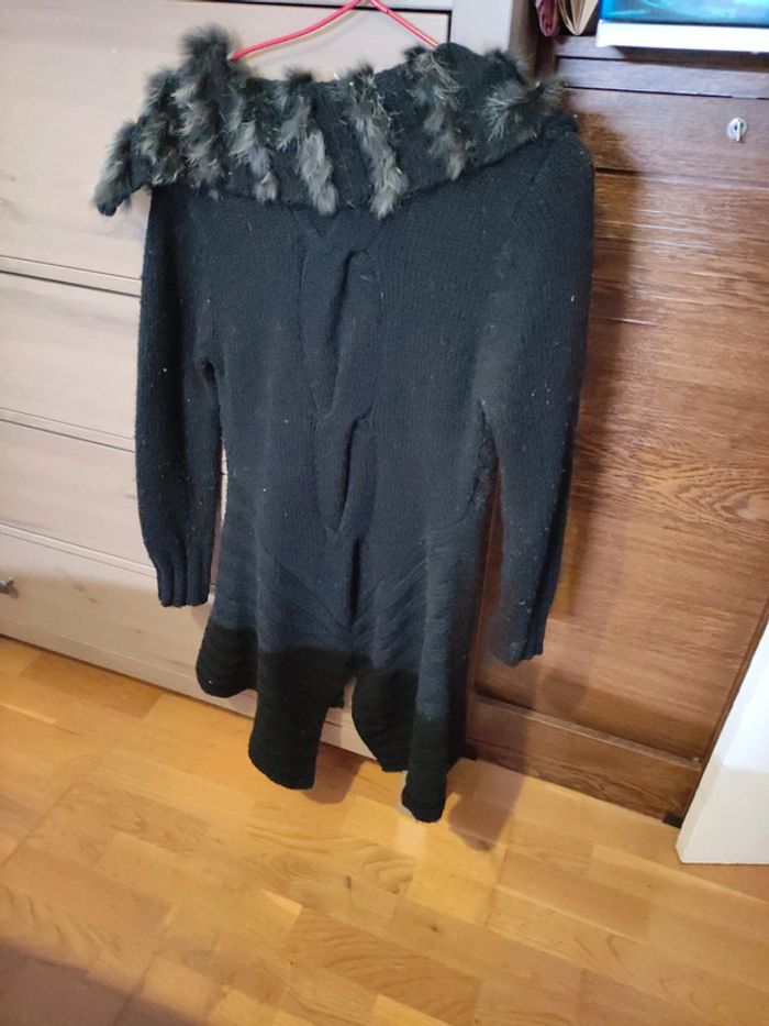 Gilet long noir vintage avec fourrure au col - photo numéro 4