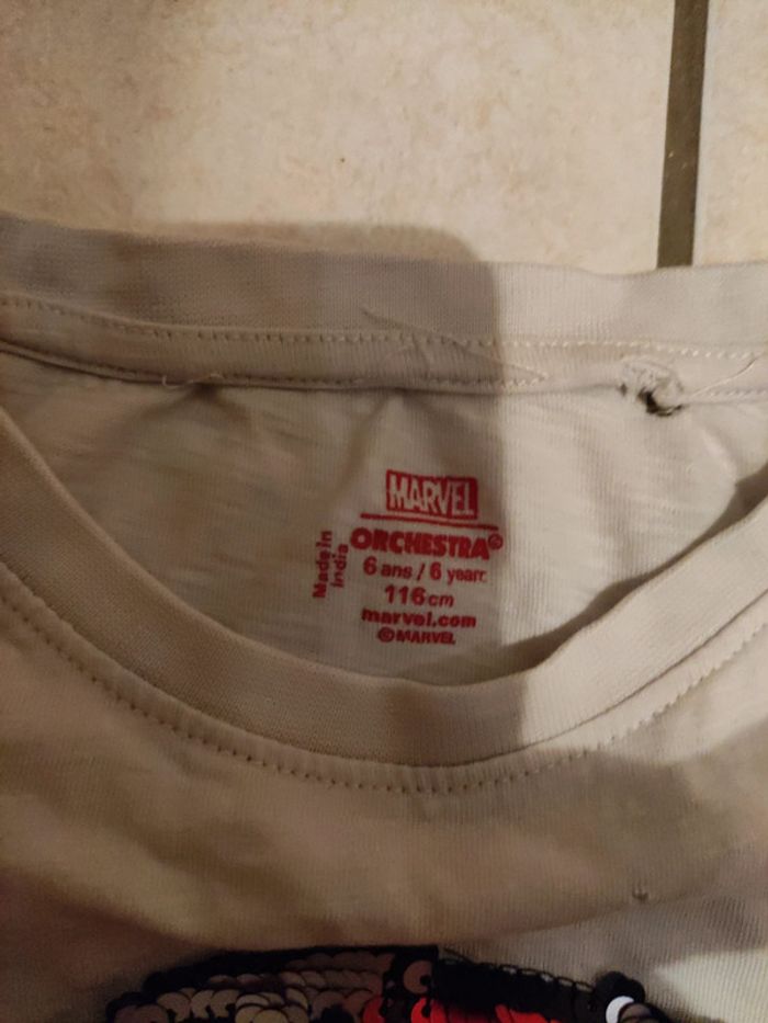 Chemise garcon orchestra + tee shirt avec petit accroc marvel orchestra 6 ans