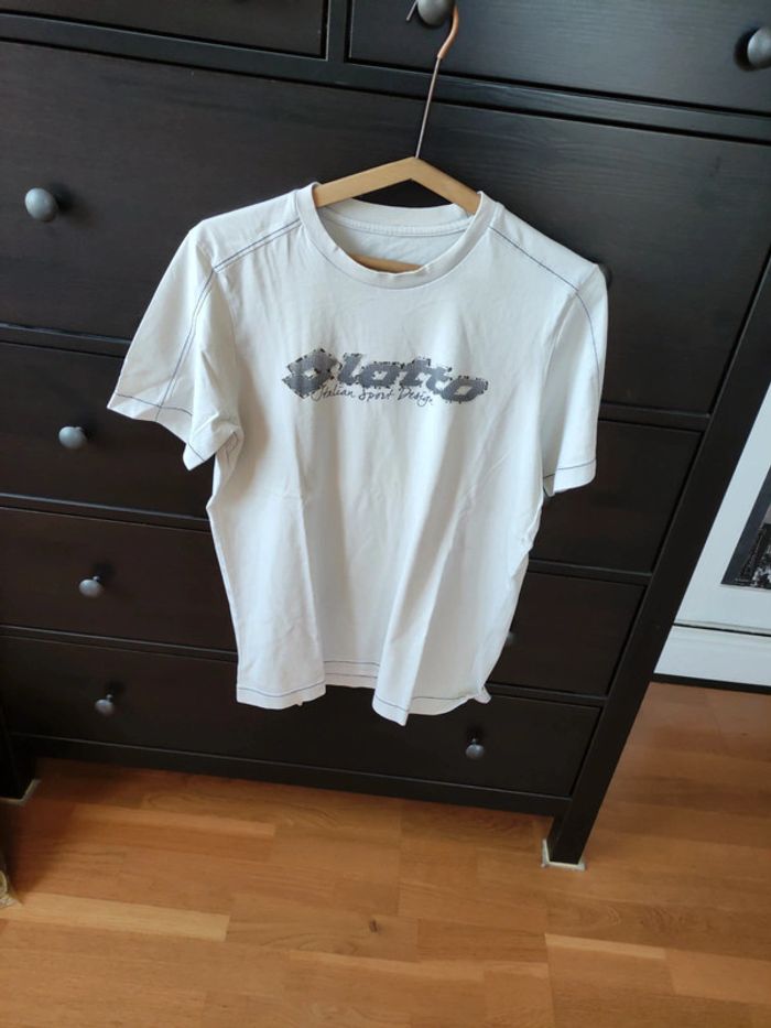 Lot de 3 tee shirts homme taille S deja servis mais peuvent avoir une deuxieme vie.... 2 tee shirts lotto avec mini taches visible sur phot 1 de marque bonobo 10 ₵ les 3