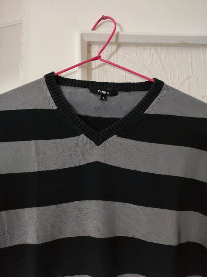 Pull homme col V marque Firefly taille L gris et noir très bon état