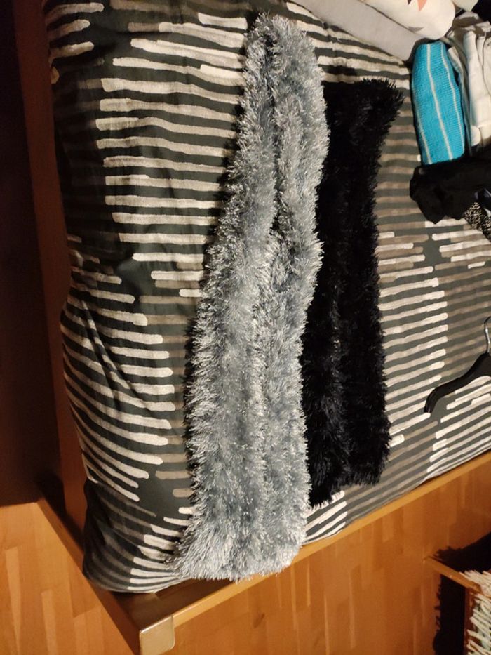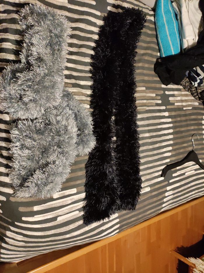 2 écharpes brillantes poils une noire et une grise argentée toute neuve 160 de long x 10 de large environ 10 euros les 2