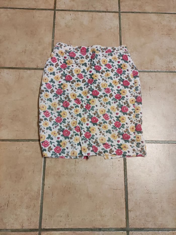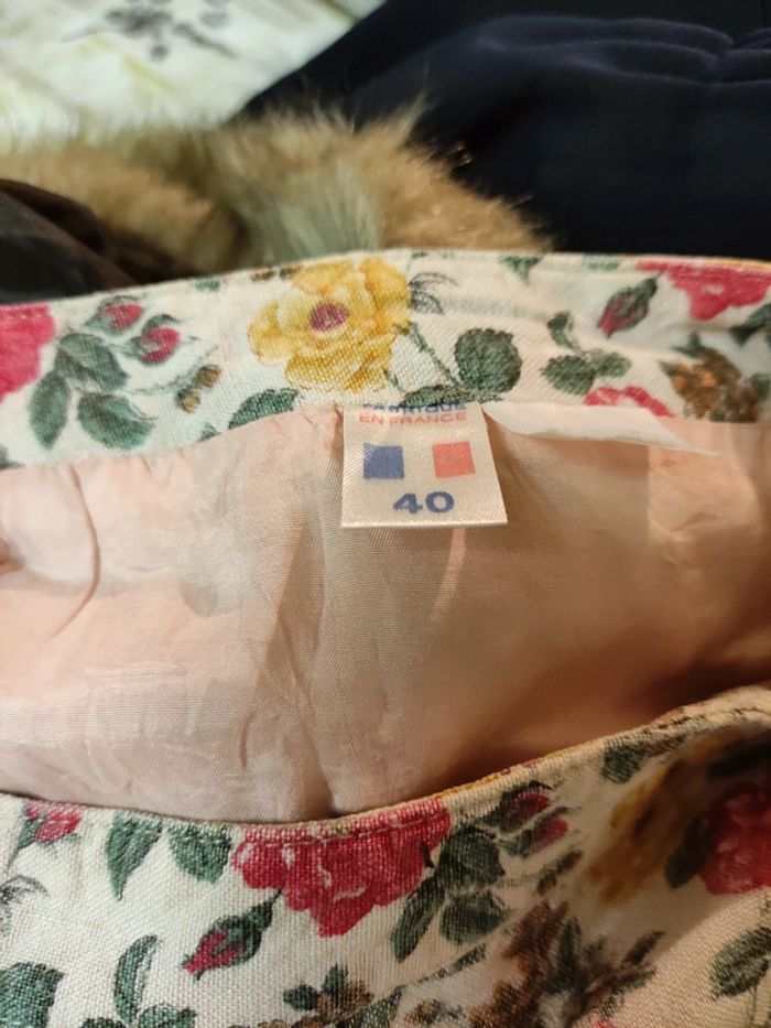 Jupe femme fleurie fabriquée en France avec du lin 53 cm avec doublure