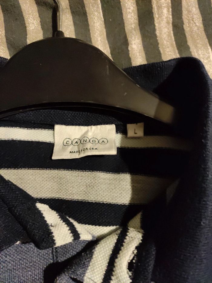 Très beau polo homme manches longues rayé bleu marine gris blanc excellent état taille L marque C&A