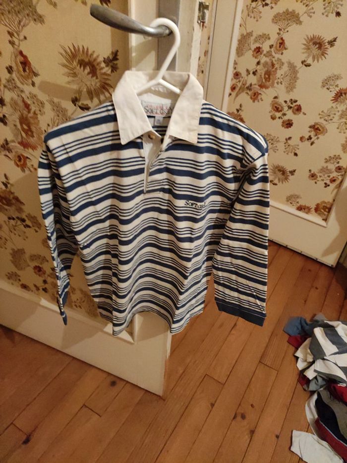 Polo rayé bleu et crème taille 10 ans manches longues
