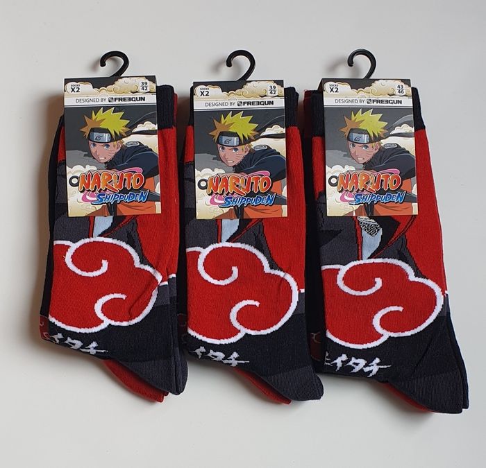 Bonjour je vends ce lot de 6 paires de chaussettes Naruto shippuden 4 paires 39/42 + 2 paires 43/46 Prix:13 €
