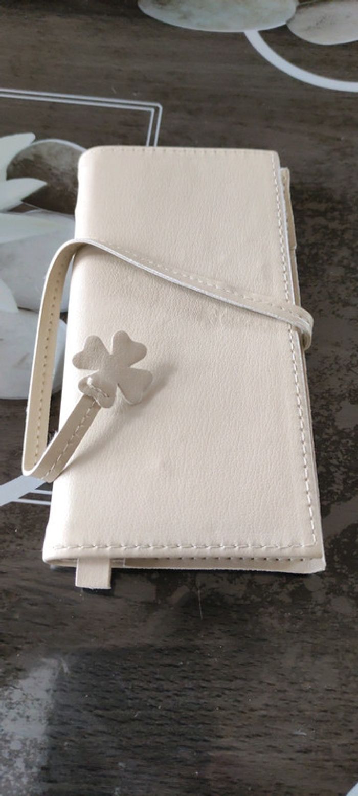 Joli agenda perpétuel avec housse cuir couleur crème marque 3 suisses tout neuf encore dans la pochette 8 de large x 16 de long