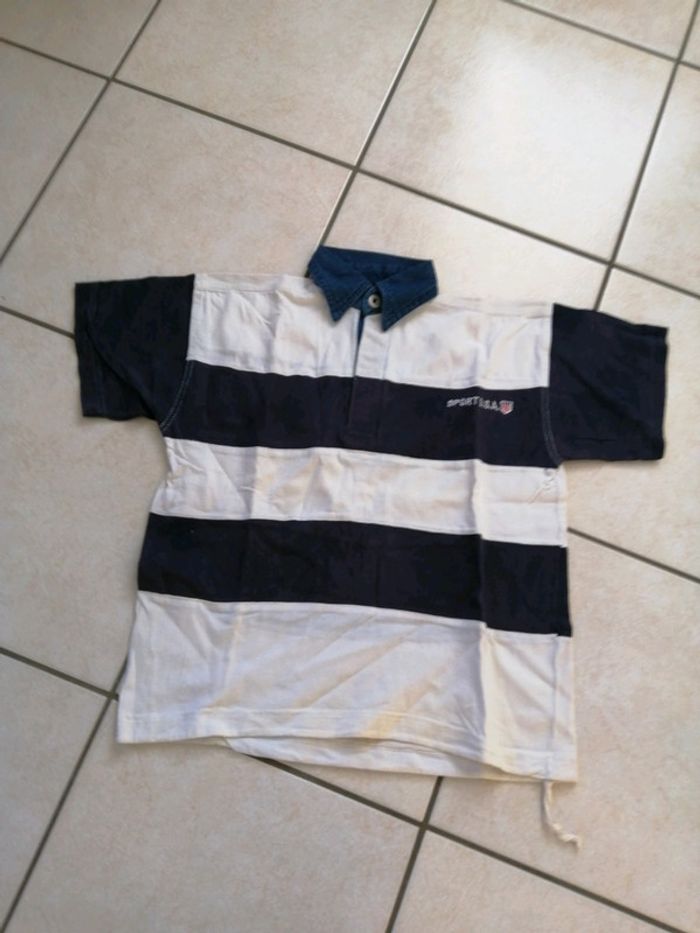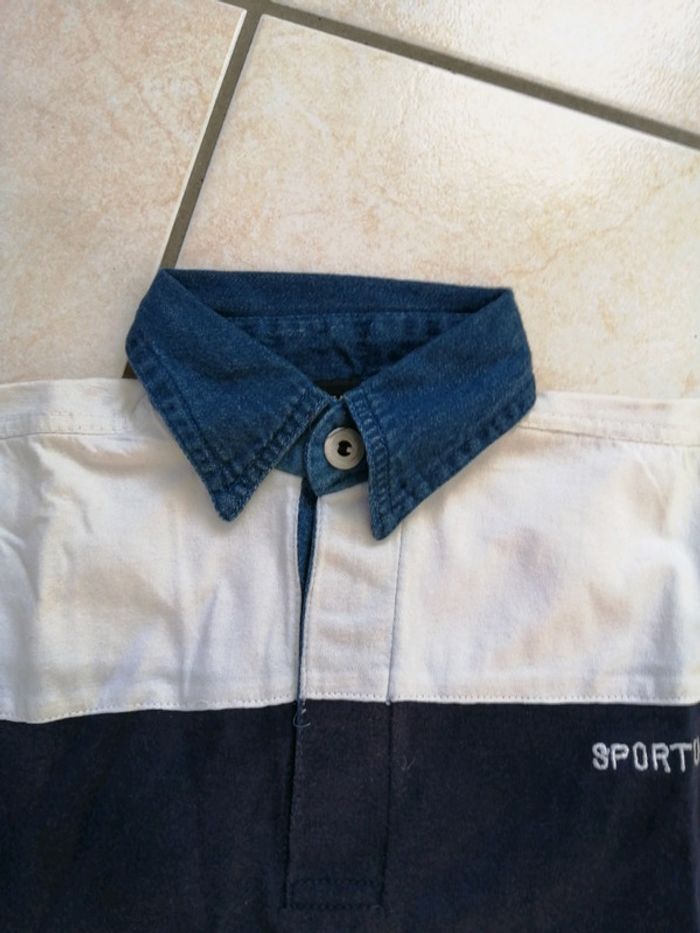 Polo enfant en coton blanc bleu marine Col jean Taille 6 ans