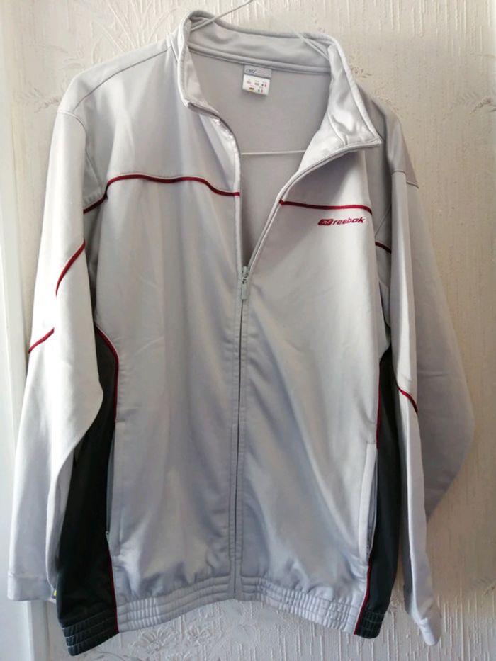 Veste garçon de marque Reebook gris clair gris foncé et liseré bordeaux Bon etat et 2 pochrs avant 14 ans