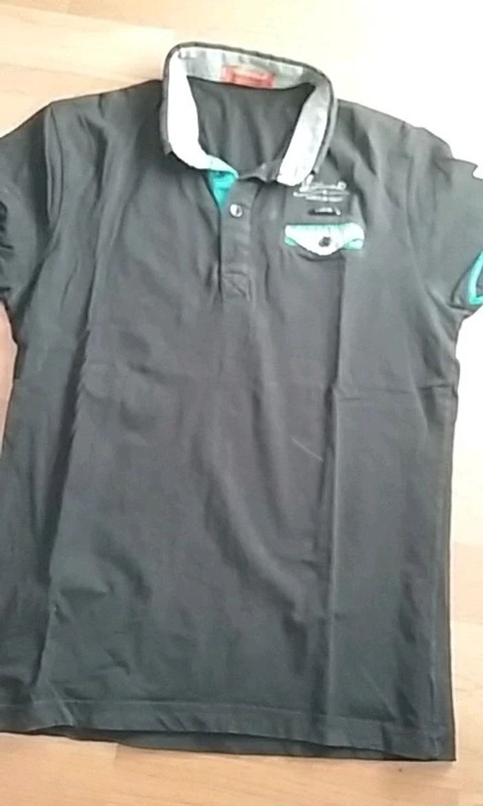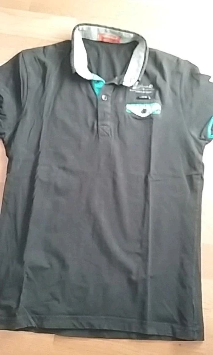 Très beau polo noir et quelques touches bleu turquoise taille S