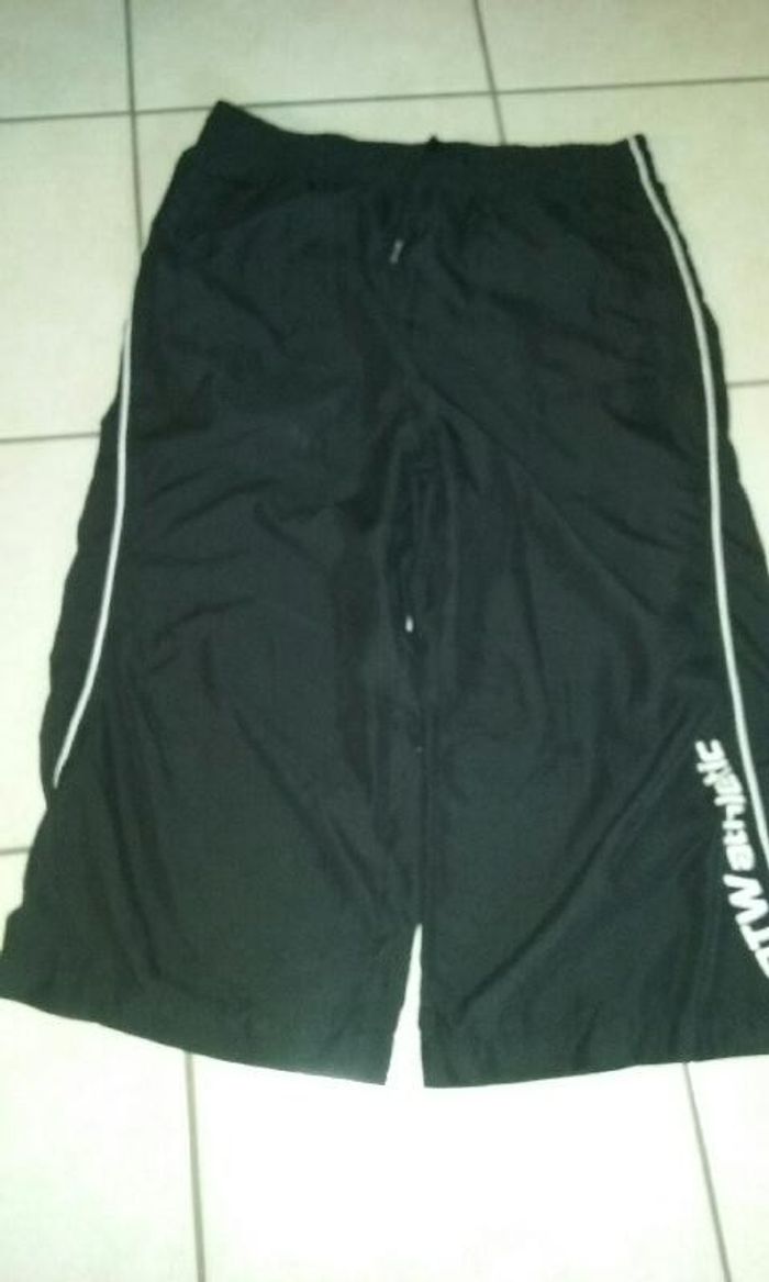 pantacourt noir liseré blanc sur le coté petit défaut sur l'avant visible sur photo 2 poches avant 100 % polyester