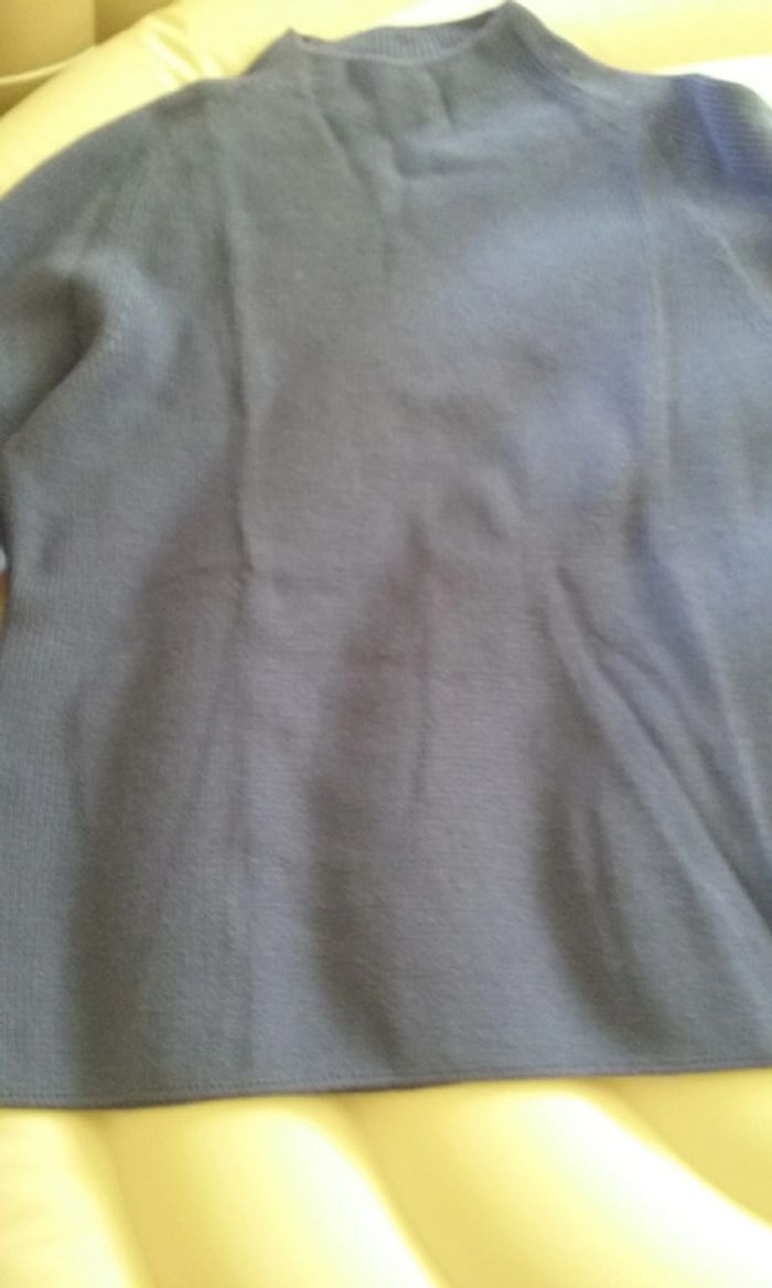 Super pull coloris bleu col ras du cou en maille 50 % laine et 50% acrylique