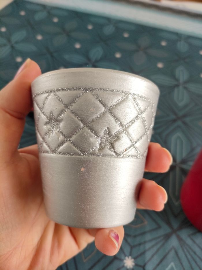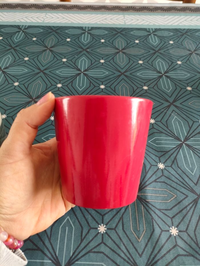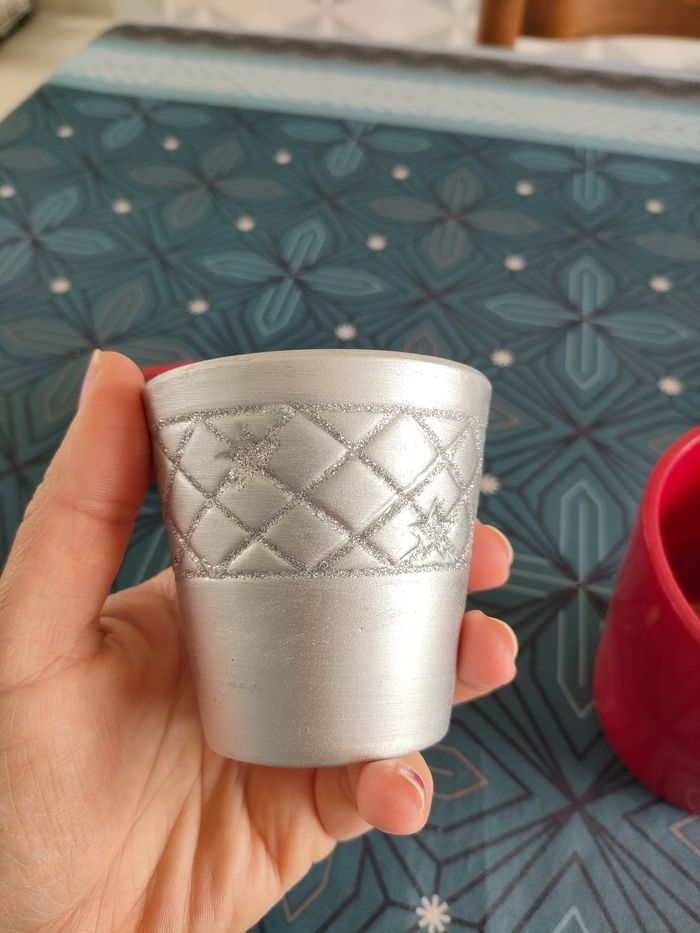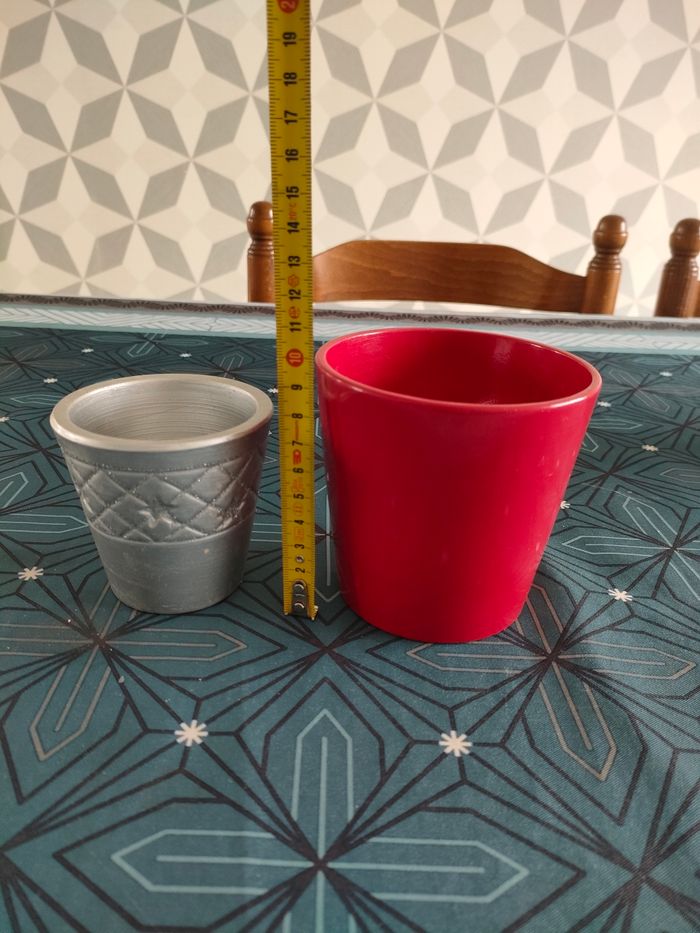 Petit point sur le gris Rouge hauteur 9,5 cm Diamètre 10 cm Gris hauteur 7,5 cm Diamètre 8 cm