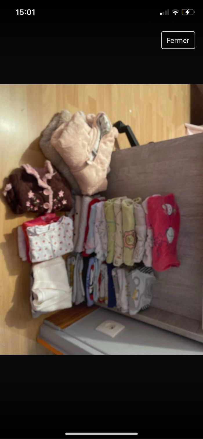 Vends lot de vêtements fille, un lot, quatre ans, un lot, trois mois, un lot, six mois, un lot, neuf mois, je vends tout le lot